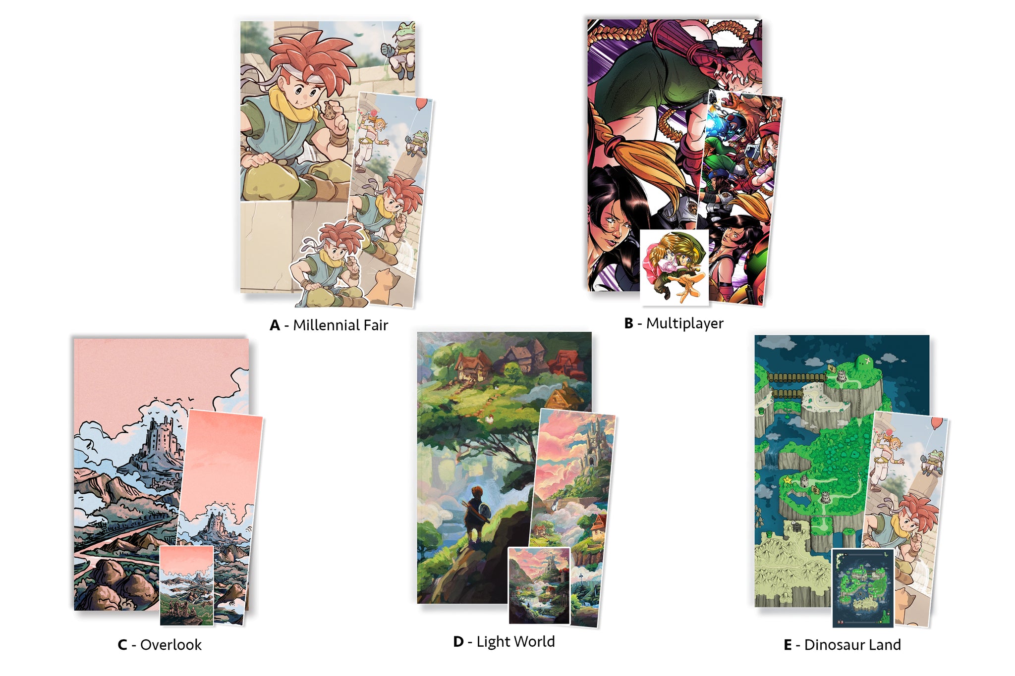 Millennial Fair art by Duke Hoover. Multiplayer art by George Quadros and Gustavo Santos. Overlook art by Philip Summers. Light World art by Mary Anne Kluth. Dinosaur Land art by James Nalepa.